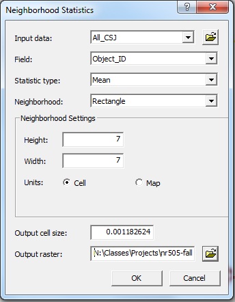 For more information on the Spatial Analyst Neighborhood Statistics function, see our "GIS Concepts" section.