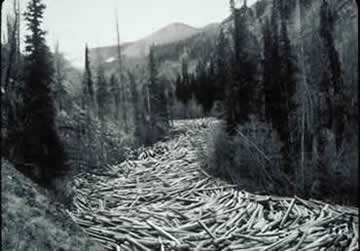 Major alteration of forest and stream channel characteristics took place during the “tie drive” period. As the American railroad network expanded in the Western states, stream networks were used for transport of timber to be milled into railroad ties.