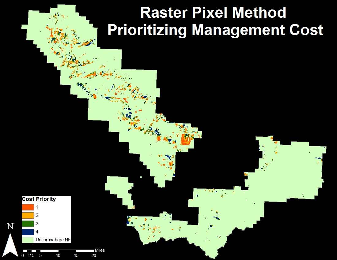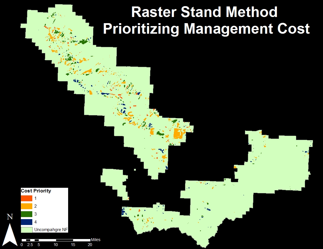 Graph 1: The proportion of the SAD affected landscape classified by management priority class by different methods. Color scheme matches maps.