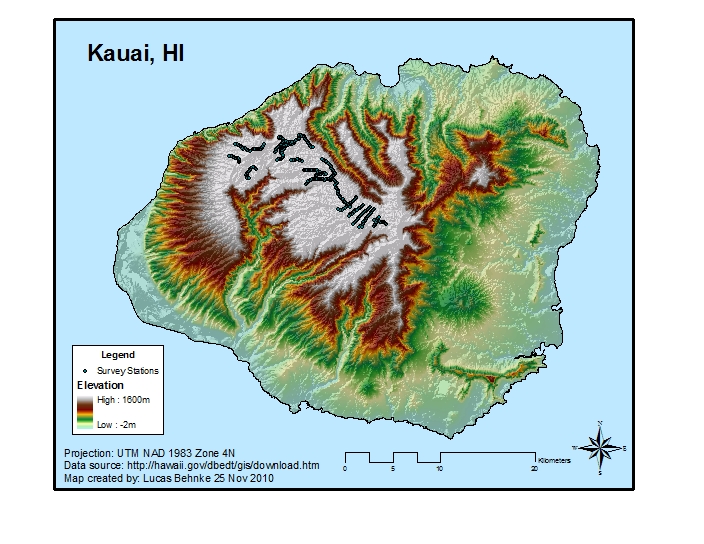 This study utilized data primarily from the state of Hawaii and the U.S. Geological Survey in combination with ground-derived spatial data for current Kauai Forest Bird Survey stations.