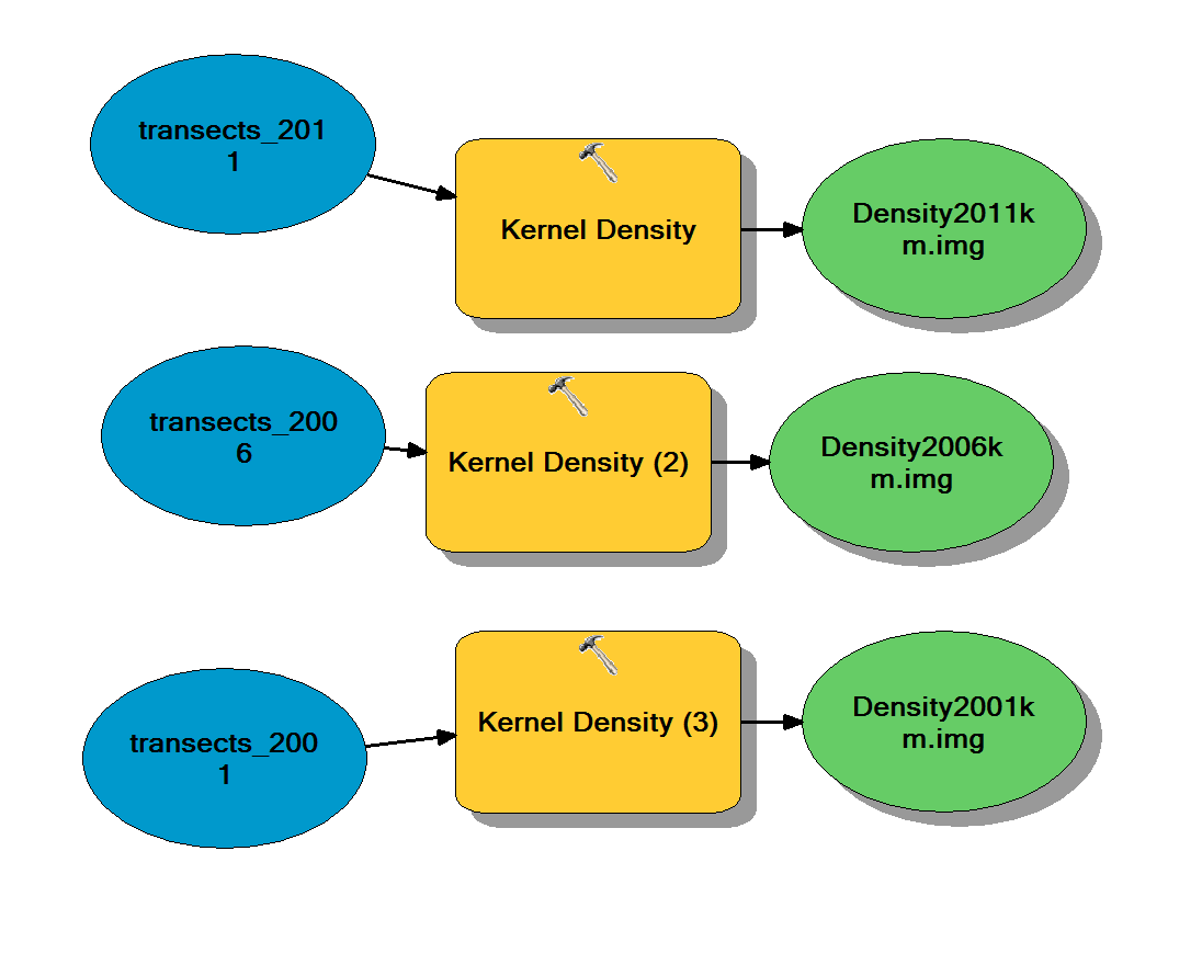 Calculating the percent of developed land by transect for 2001 (2006 and 2011 are not shown, but used similar models)
