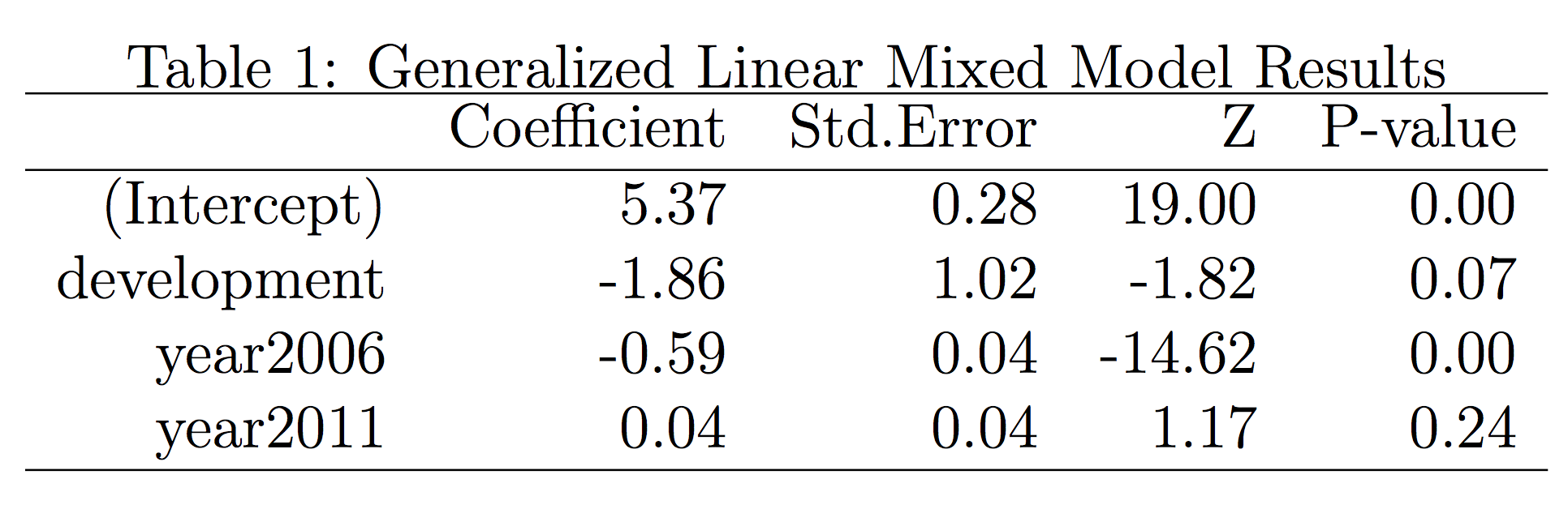 The mixed model approximated shows a marginally statistically significant effect for the percent development