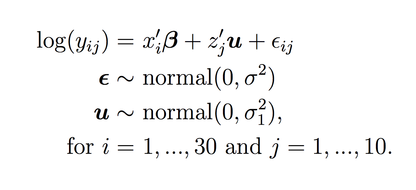The following formula shows the general form of the model:
