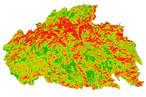 Many files had to be created, in order to conduct our comparison between the two fires. The elevation source files were used to create raster files of slope, aspect and hillshade. The LandSat imagery was used to create Normalized Difference Vegetation Index files. The methodology for new file creation and analysis can be found on the Methodology Page of this website.