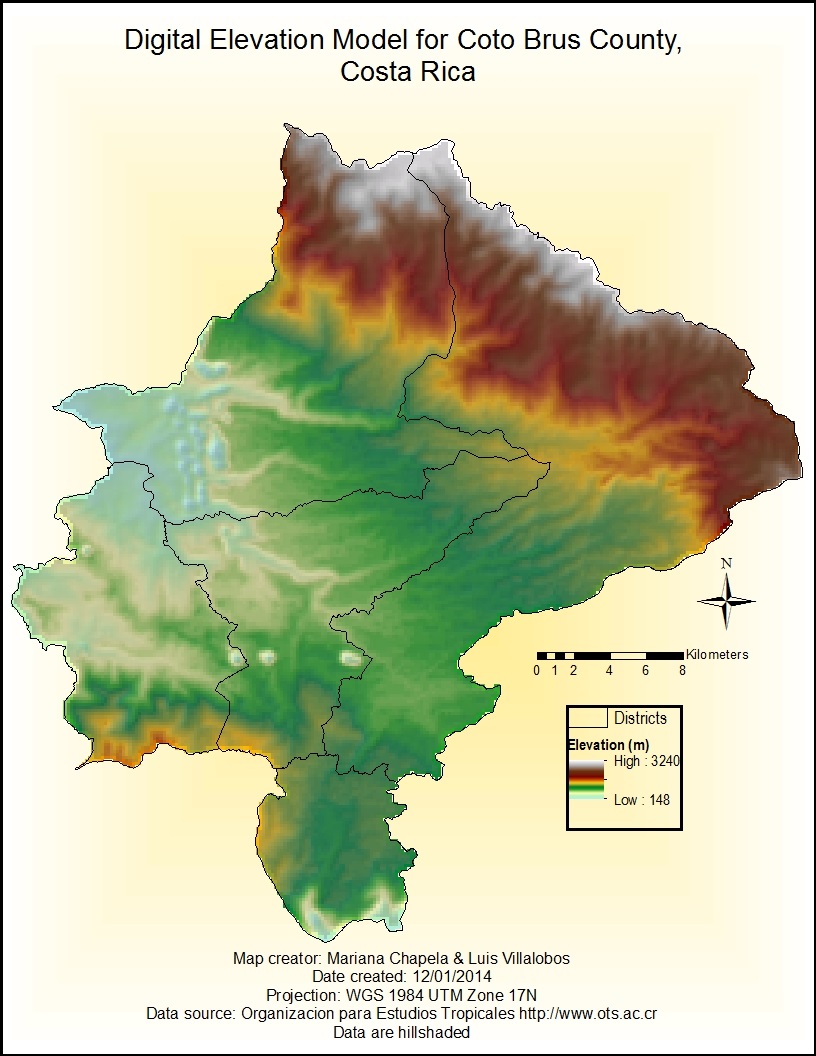Base MapBase MapThe following map shows the Digital Elevation Model for Coto Brus County created from a Topographic polyline file. Data are hillshaded.