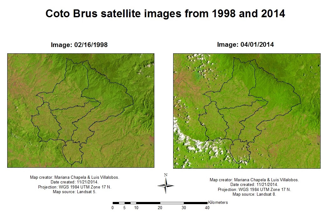 Change in land cover for two years in the area of study. These two satellite images were used to create an estimate of NDVI
