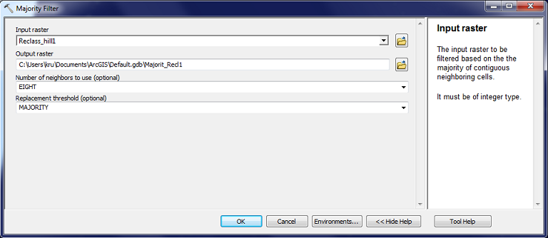 The majority filter was set so that the value of each individual pixel was recalculated to represent the majority of the eight neighboring pixels.